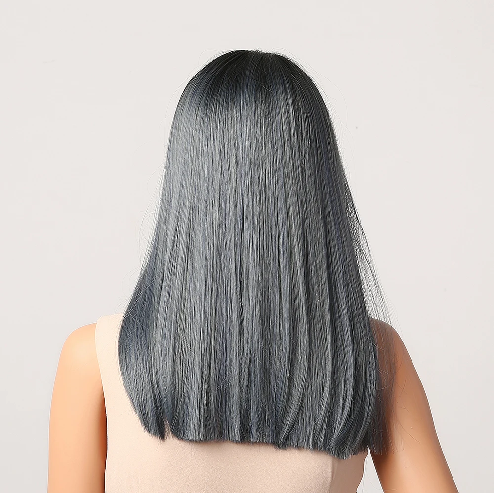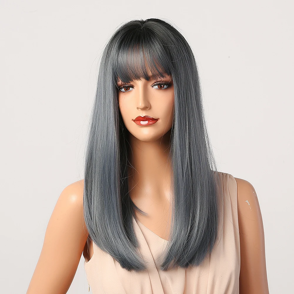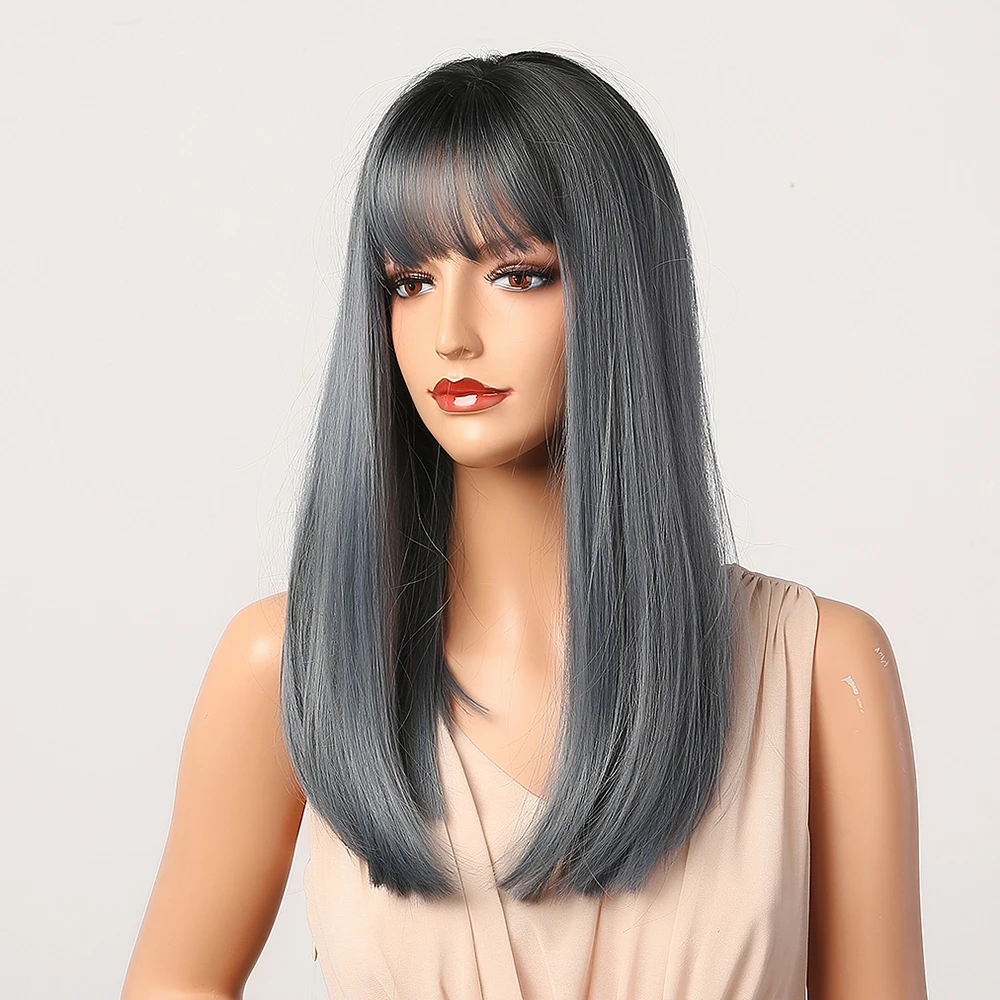 Длинные прямые Синие Серые синтетические парики с челкой henmargu, ...