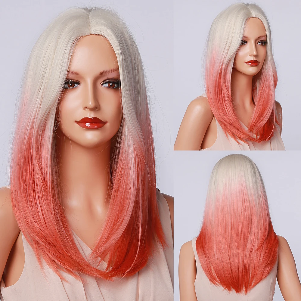 Женские длинные прямые синтетические парики, с эффектом омбре
