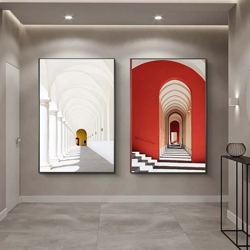 Настенная картина в скандинавском стиле абстрактное здание и церковь