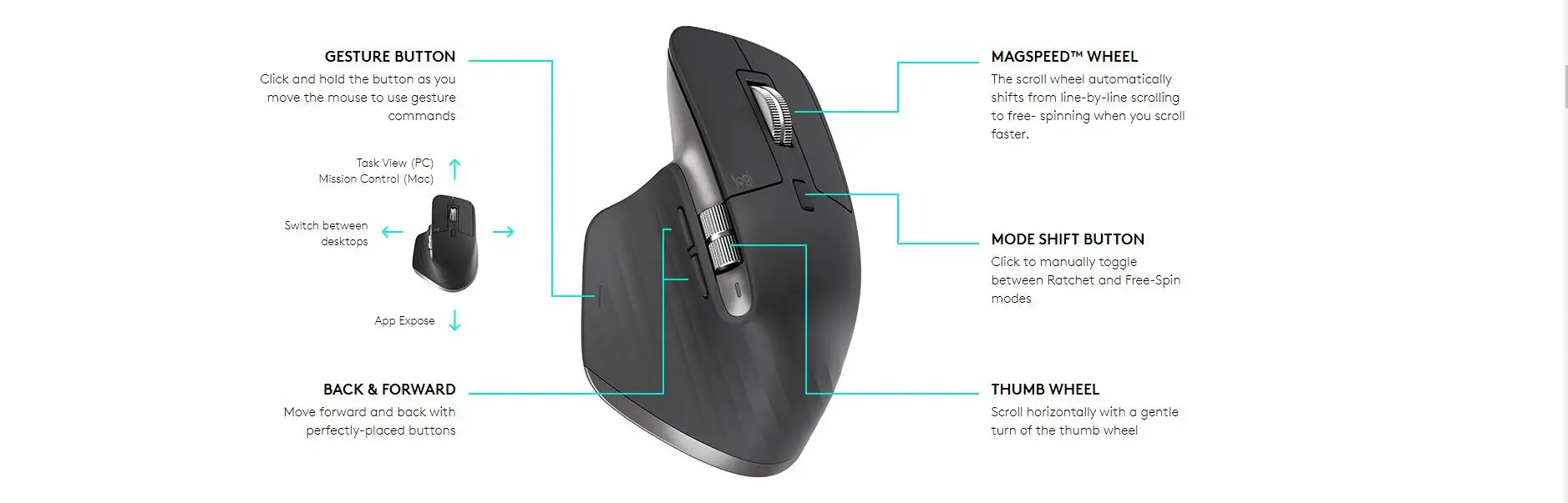 MX Master 3 быстрее и на 5x более точно, чем basic mouse1, поэтому вы каждый раз выбираете правильный пиксель. Logitech Darkfield? Отслеживание позволяет отслеживать практически любую поверхность-даже glass4-с лучшей в своем классе точностью 4000 DPI.
