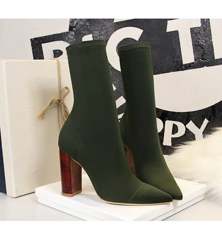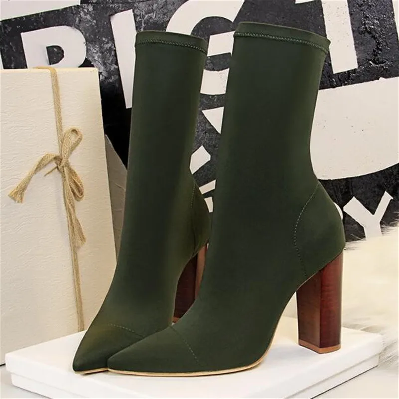 RASMEUP 2020 женские ботильоны из эластичной ткани с острым носком на высоком каблуке без застежек, брифы Челси, модные облегающие Женские ботинки