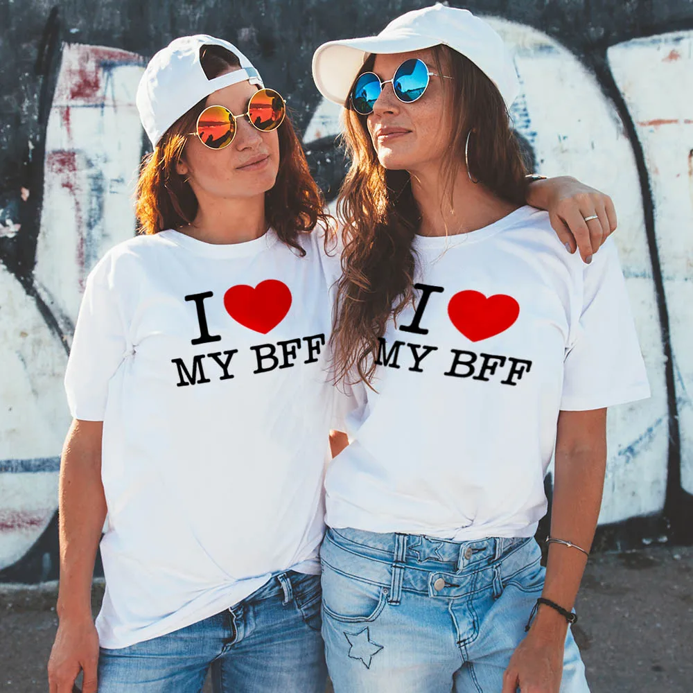 Футболки для пар, одинаковые футболки для сестер, Новое поступление, футболки с надписью I Love My Bff RED Heart для взрослых, футболки с надписью Best Friend