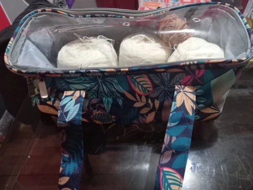 Сумка - пушка!!! Очень вместительная, легкая, вместила 12 мотков пряжи и все вязальные принадлежности (у меня их немало). Сверху дырочки для ниток, так что можно вязать и в дороге. Шла в Подмосковье чуть больше двух недель. Продавцу огромный респект!!!