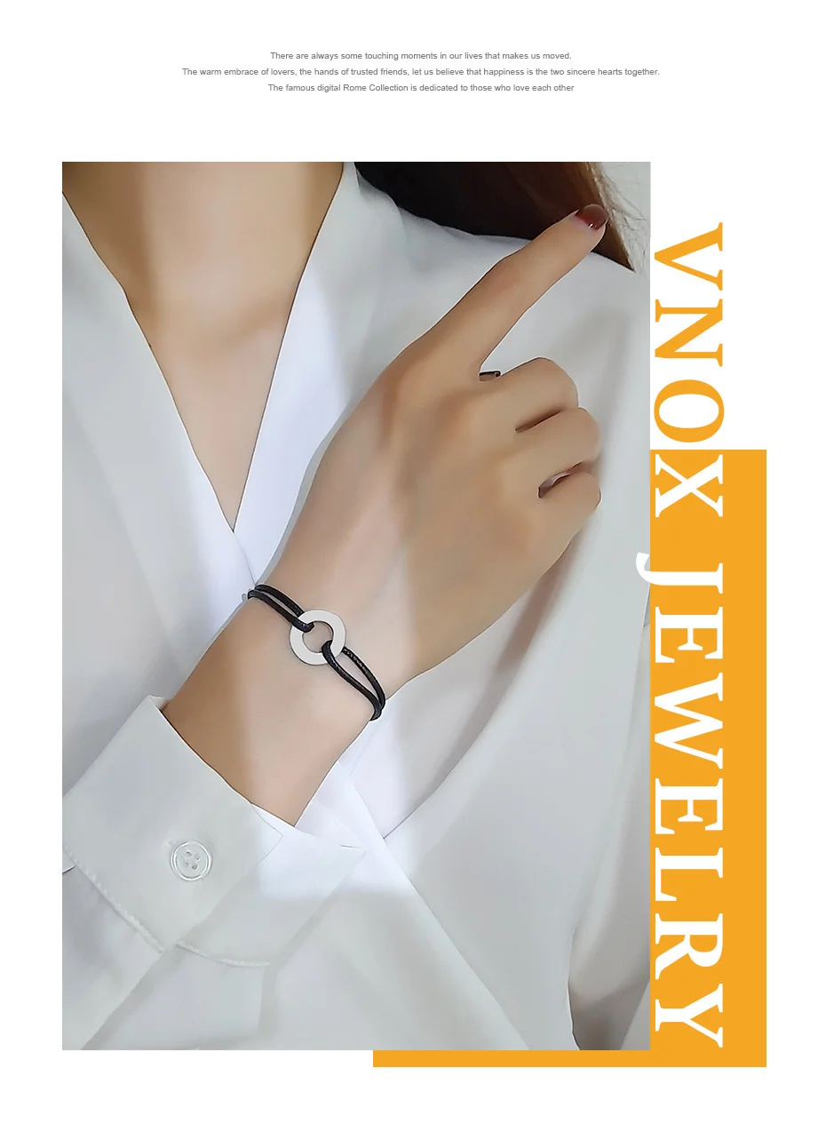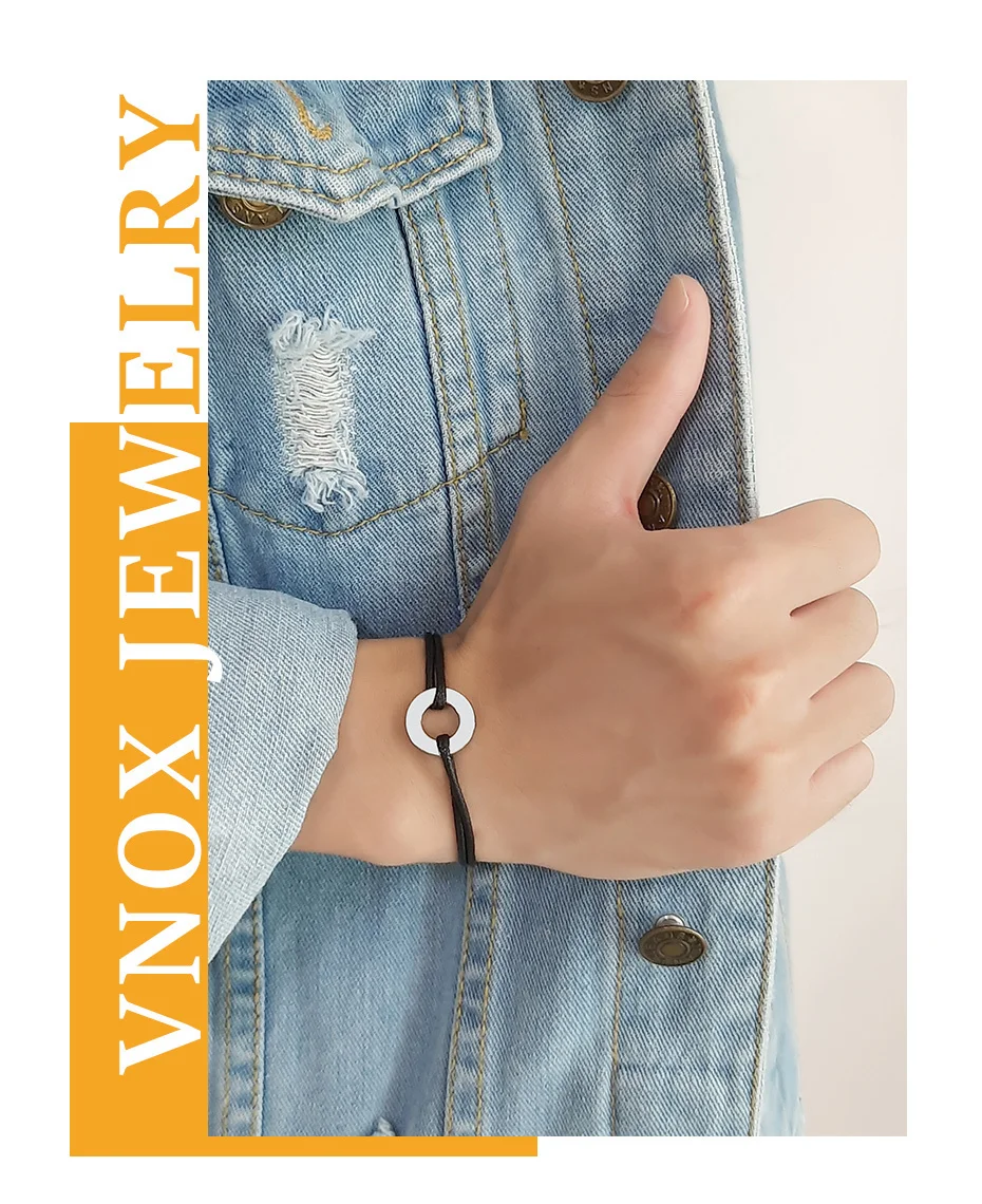 Минималистичный круг Vnox для женщин, мужчин, простые шикарные украшения унисекс, регулируемая длина, Круглый браслет с подвесками