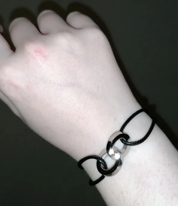 При всей моей любви к этому магазину, данные браслеты, к сожалению, вышли неудачными. Шнур очень гладкий, из-за этого узлы постоянно развязываются и очень легко скользят, из-за чего постоянно приходится подтягивать. Пришлось маленько доделать - кончики огнём запечатала, узлы как могла затянула и проклеила секундным клеем и пока что, вроде, получше держится. Но данную модель подумываю сделать с цепочкой вместо шнура. В любом случае продавцу огромная благодарность за очень приятную скидку! Из двух вариантов мне больше понравится с одной шайбой - и смотрится симпатичней, и сидит удобней, с двойной слишком торчит и тяжёлый, из-за чего постоянно переворачивается шайбами вних