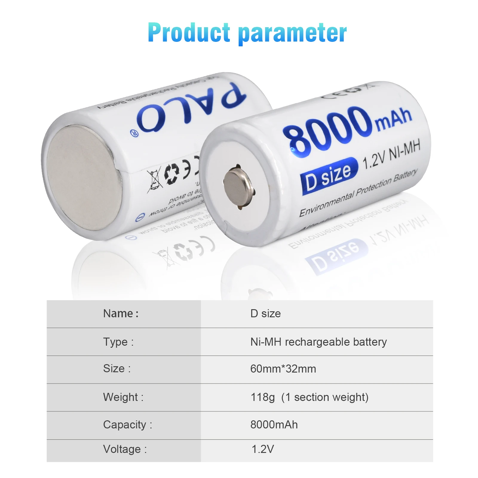 PALO 8000 мАч 1,2 в перезаряжаемая батарея размера D перезаряжаемая...
