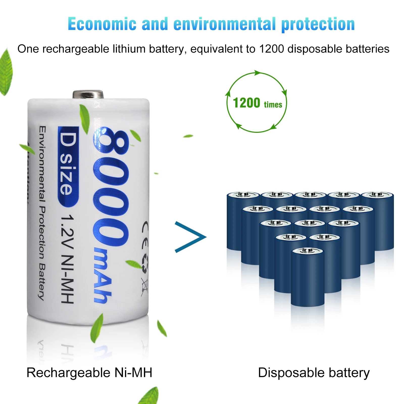 2-8 шт. D размер R20 аккумуляторная батарея 8000 мАч Тип D батарея ...