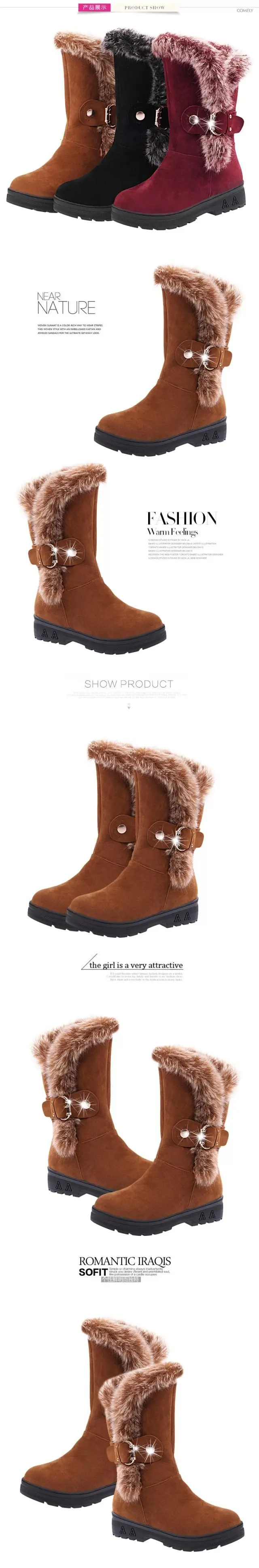2021 модные теплые однотонные женские зимние ботинки с пряжкой зимн...