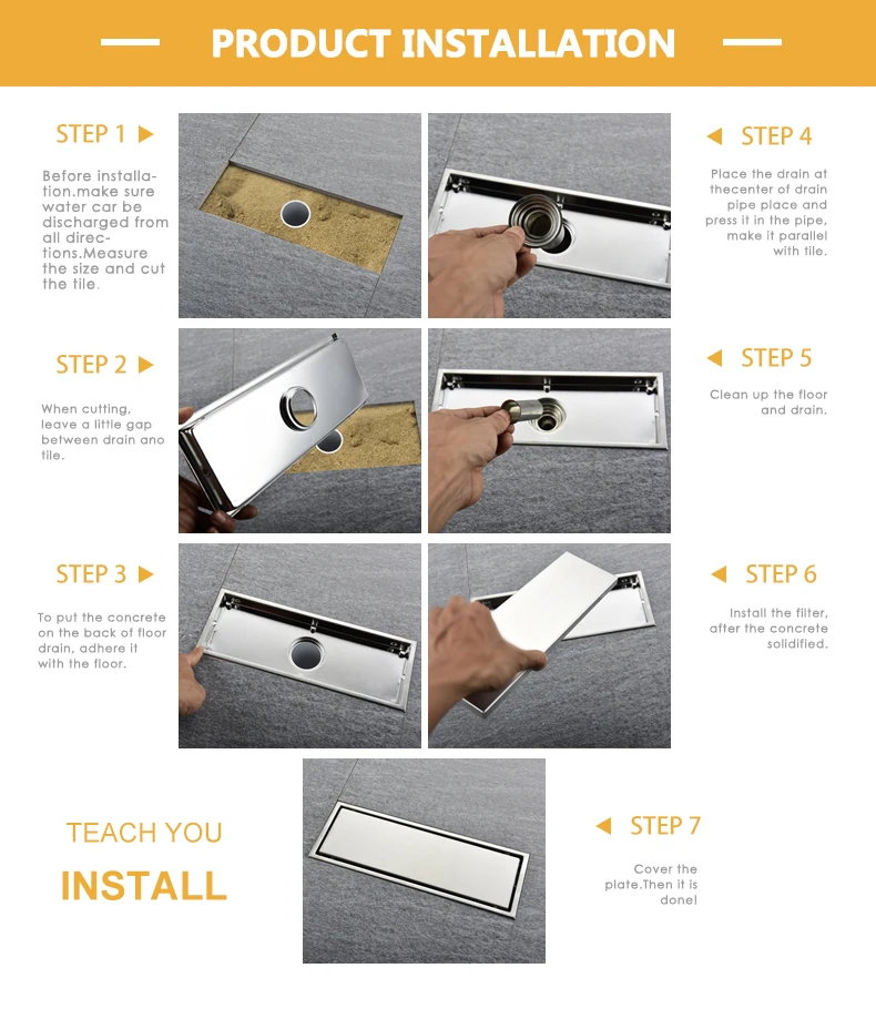 Особенности и характеристики:Название: слив полаРазмер: 600 мм или 800 ммМатериал: нержавеющая сталь 304Стиль: плоская крышка/Плитка Вставка скрытого типаПрименение: ванная комната, душевая комната, кухня, балкон, стиральная машинаДезодорант, защита от засорения, борьба с вредителями, остановить воньДля коммерческих, домашних, гостиничных, баров и т. Д.Полные детали и все монтажные фитинги включены