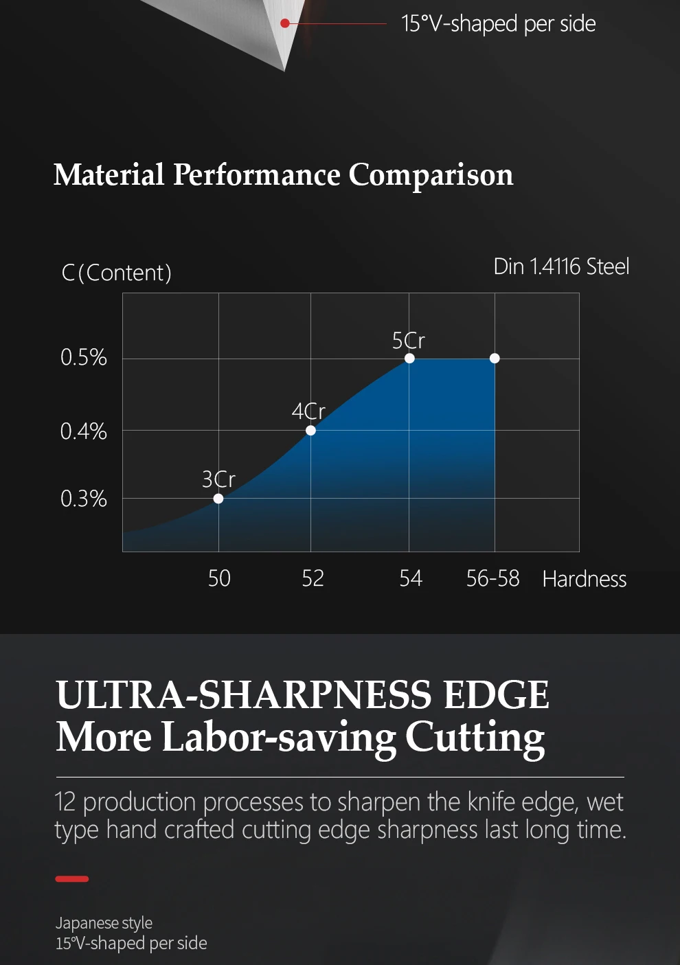 Материал лезвия:1,4116 молибденовая ванадиевая сталь Германии ThyssenKrupp Ggroup