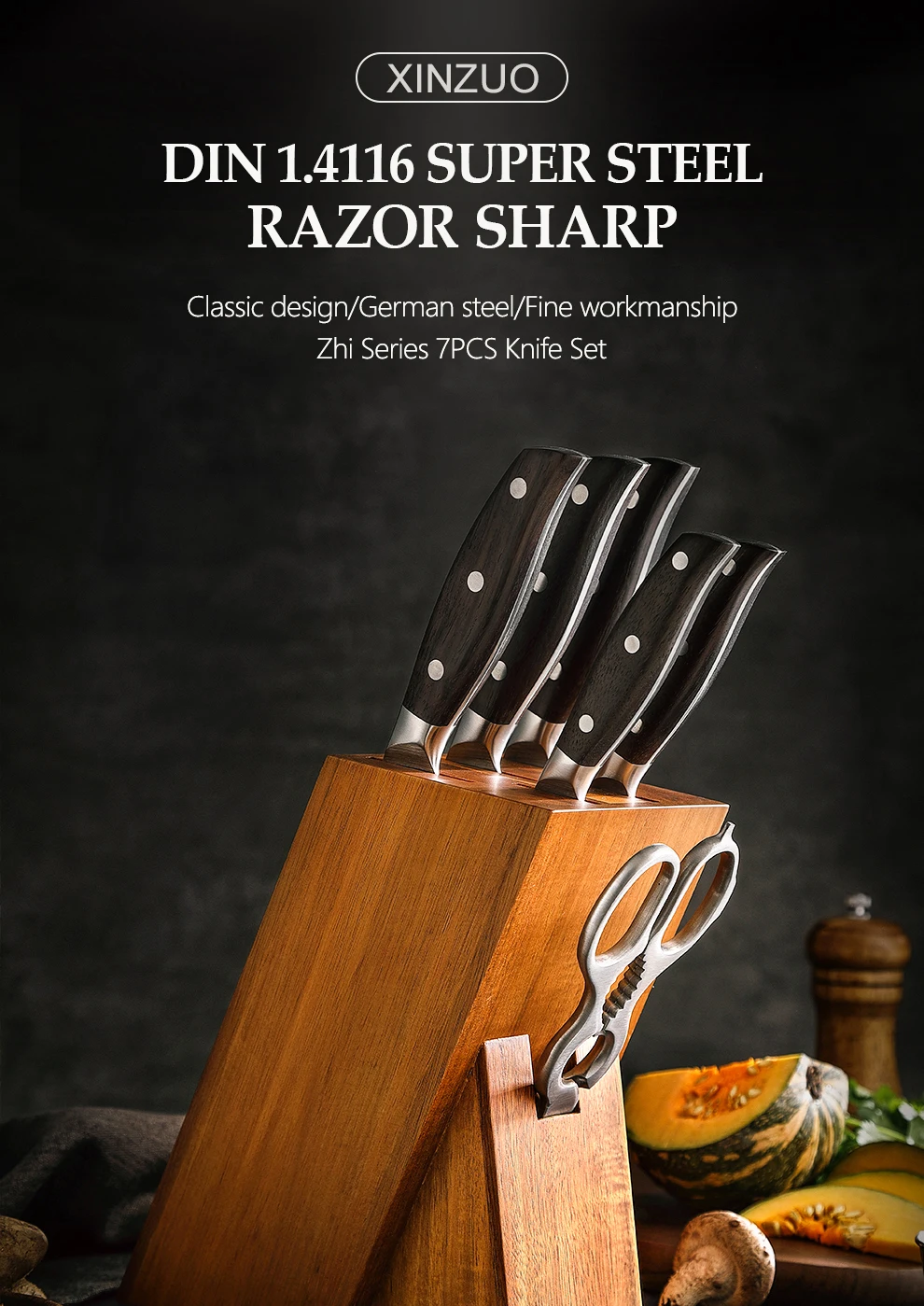 Набор профессиональных ножей XINZUO из 7 предметов, немецкий кухонный набор из 1.4116 кухонных ножей из нержавеющей стали, лучший кухонный инструмент для нарезки сантоку
