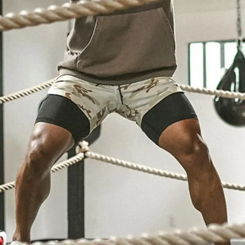 Двухслойные шорты для бега, мужские шорты 2 в 1, спортивные штаны для фитнеса со встроенным карманом, быстросохнущие пляжные шорты, повседневные мужские спортивные штаны