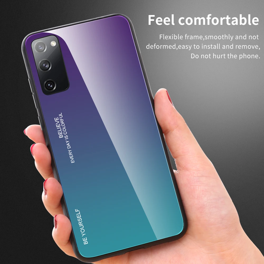 Градиентный чехол для телефона из закаленного стекла для Samsung Galaxy S20 FE 5G A51 5G A71 5G чехол на заднюю панель из резины