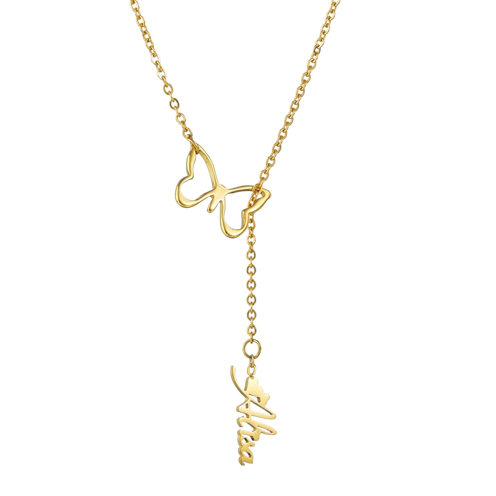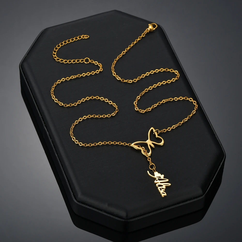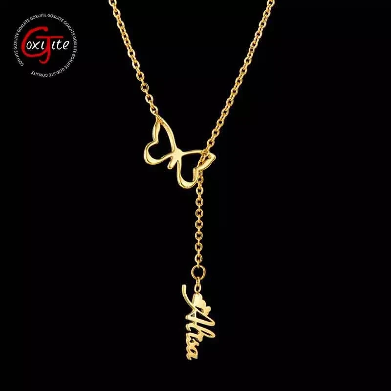 Модное ожерелье Goxijite 2020 с именем бабочки, индивидуальное ожерелье из нержавеющей стали с золотым изображением бабочки, подарок для любимого человека