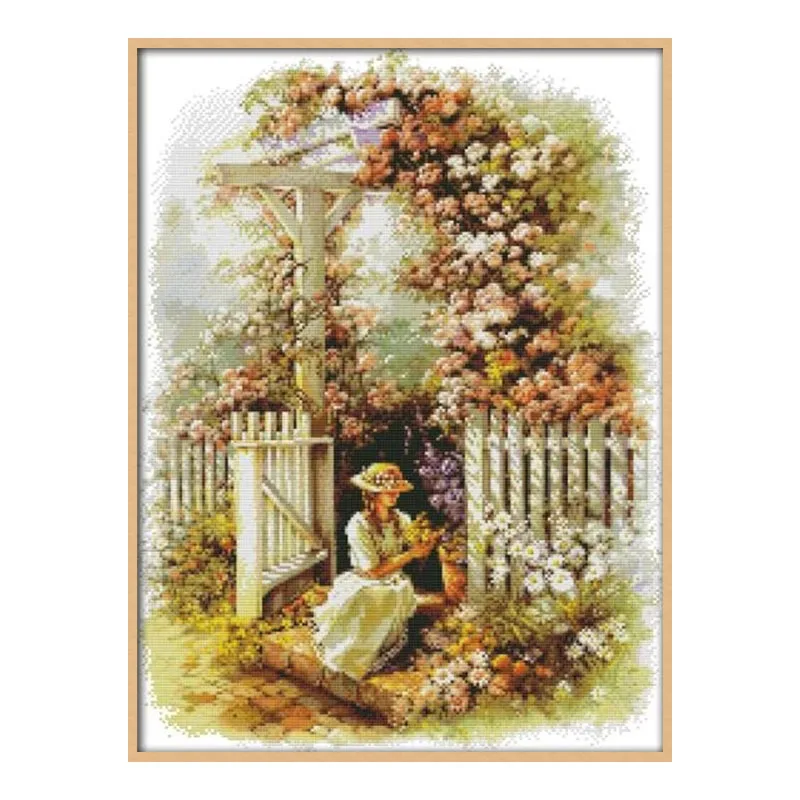 Садовая девушка счетная вышивка крестиком наборы узоров печатная ткань вышивка рукоделие Наборы 14CT 42x53 см дом картины с украшениями
