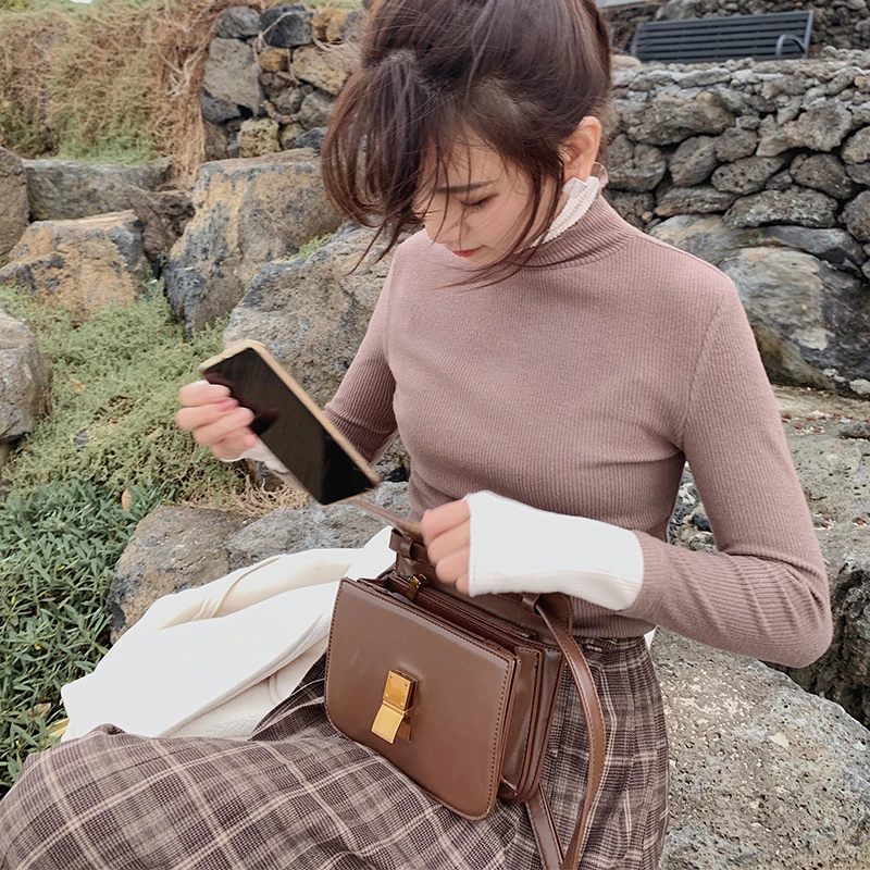 MISHOW осенне-зимний облегающий вязаный свитер женский базовый однотонный теплый пуловер с высоким воротом Топы MX19D5464