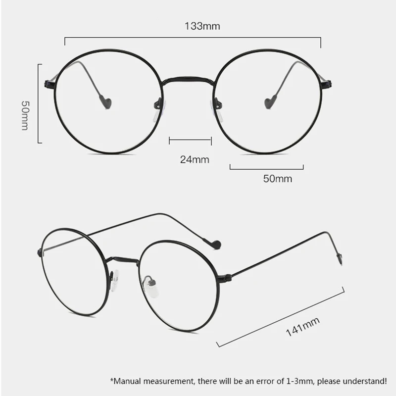 Металлическая оправа для очков от близорукости RBRARE, Легкие круглые оправы для очков для женщин, винтажные прозрачные очки для мужчин, Градуированные женские очки