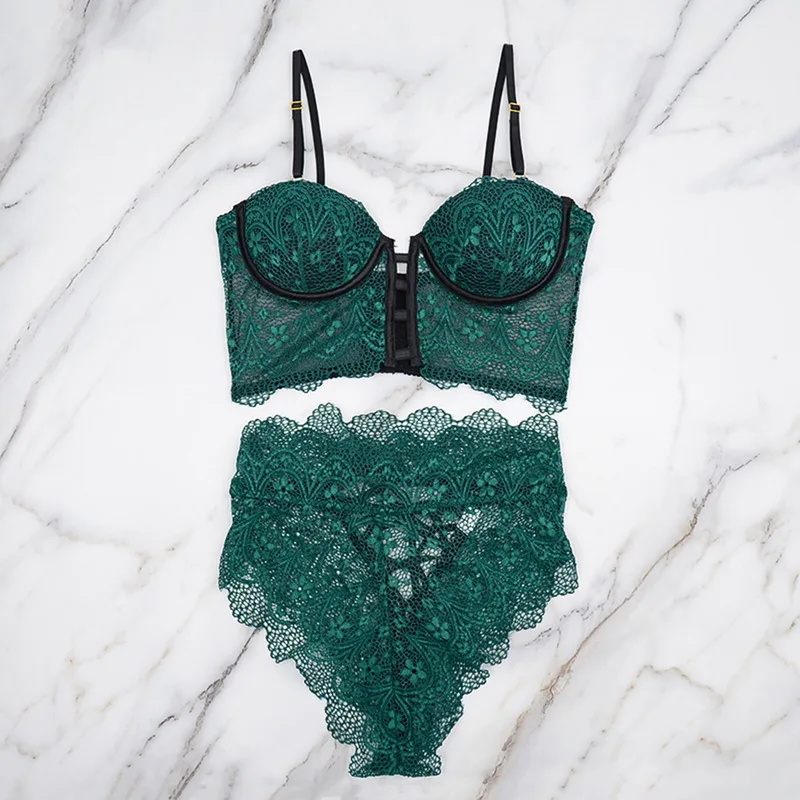 Комплект женского кружевного нижнего белья, однотонный, с высокой талией