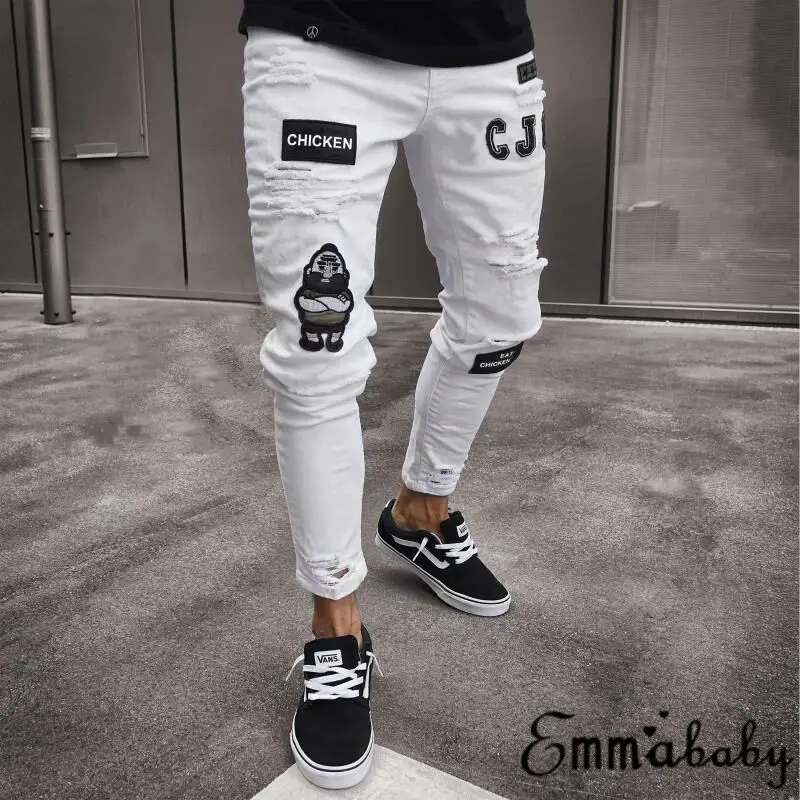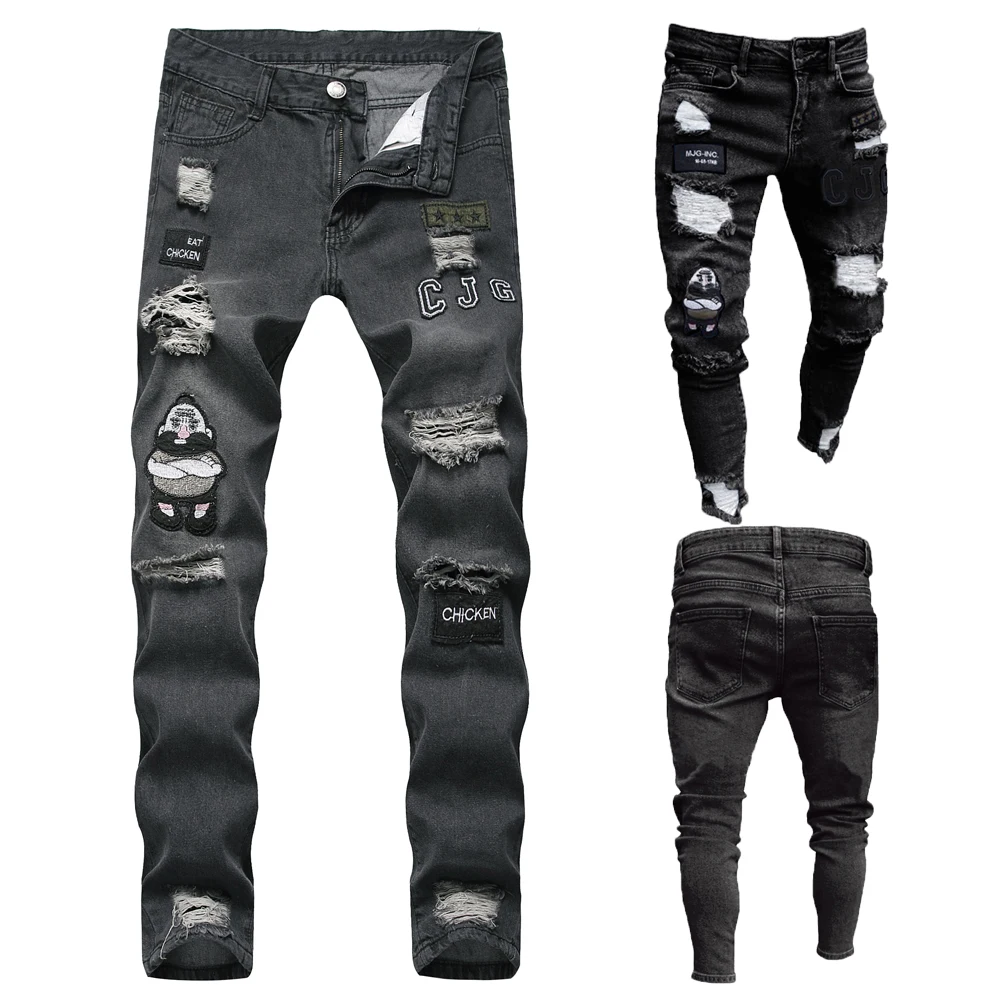 2020 новые модные мужские рваные байкерские узкие брюки джинсы с потертостями рваные повседневные джинсовые брюки S-3XL зауженные джинсы с потертостями