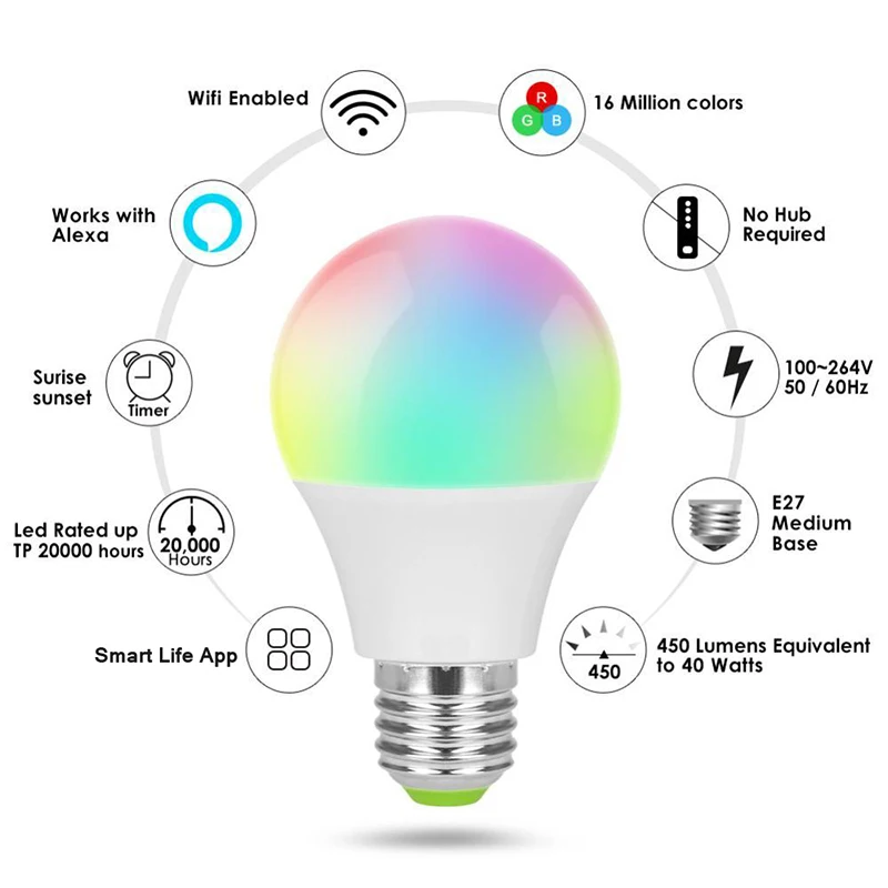 Умная Светодиодная лампа совместима с Amazon Alexa, Google Assistant и