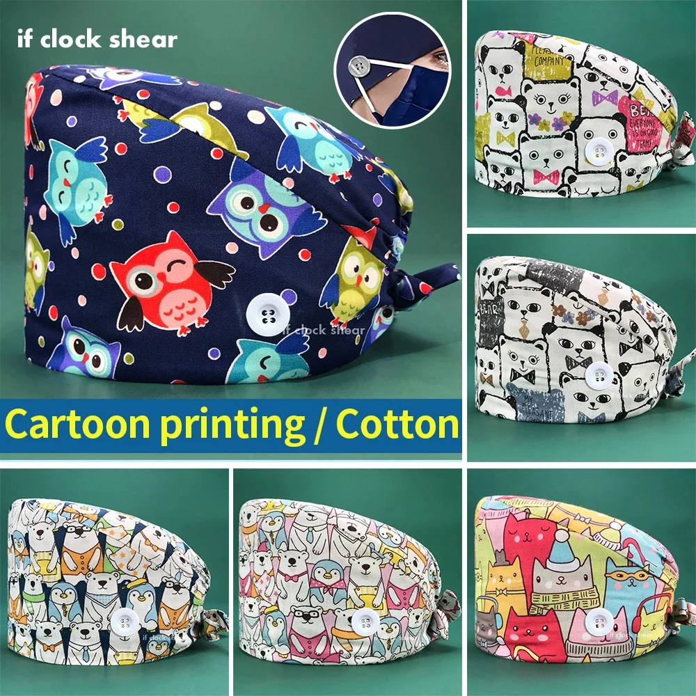 Регулируемые хлопковые медицинские шапочки с принтом животных
