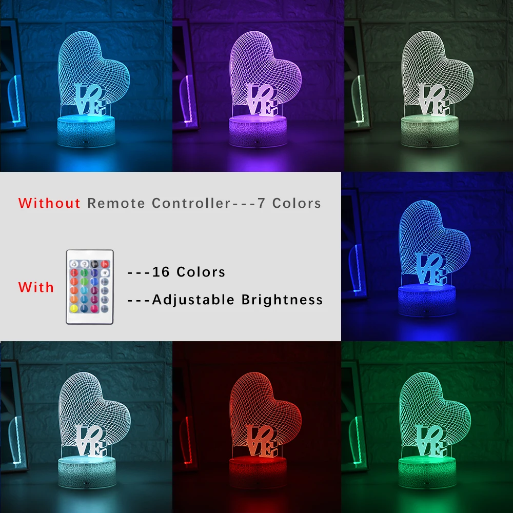 2020 новейший Детский Светильник ночник 3D светодиодный ночник креативный Настольный прикроватный светильник Романтическая любовь светильник для детей для девочек украшение дома подарки