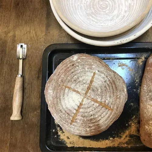 Круглая фотокорзина из индонезийского ротанга, чехол из хлопчатобумажной ткани, резак для теста для хлеба из нержавеющей стали, пластиковый скребок