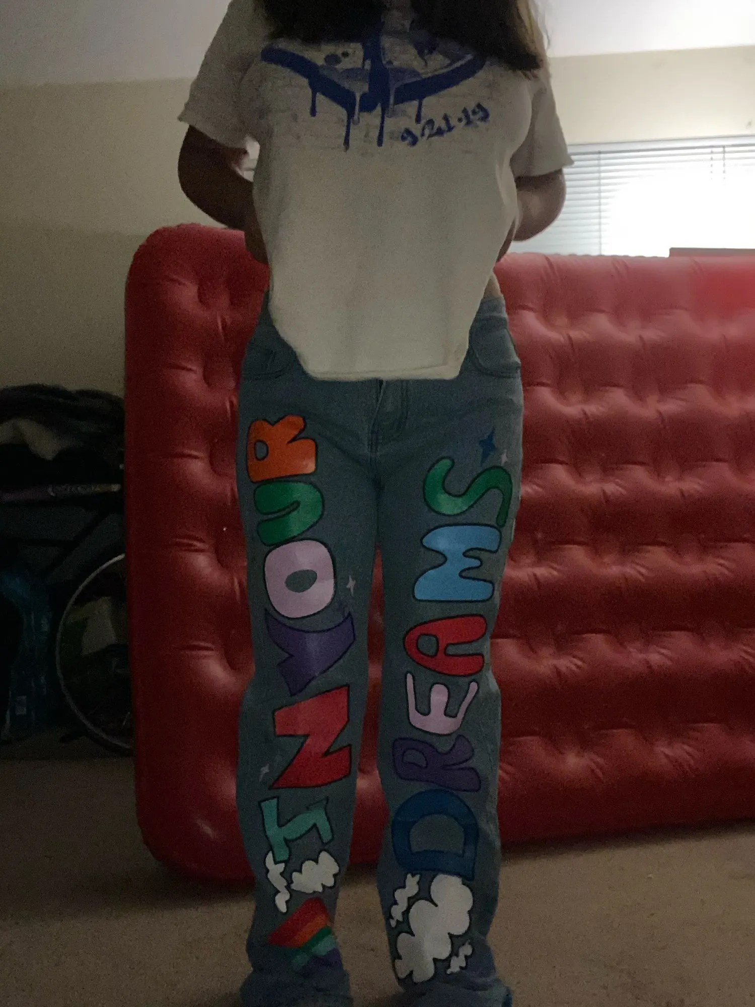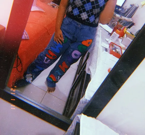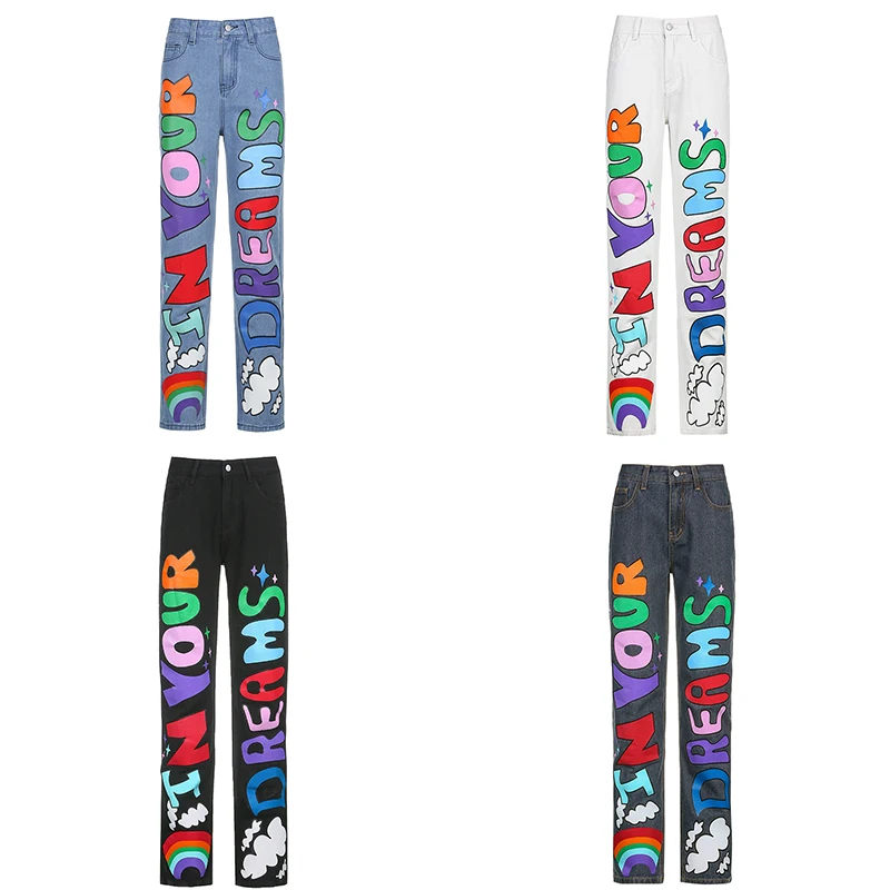 Джинсы женские Мешковатые, широкие, с принтом надписей и высокой талией
