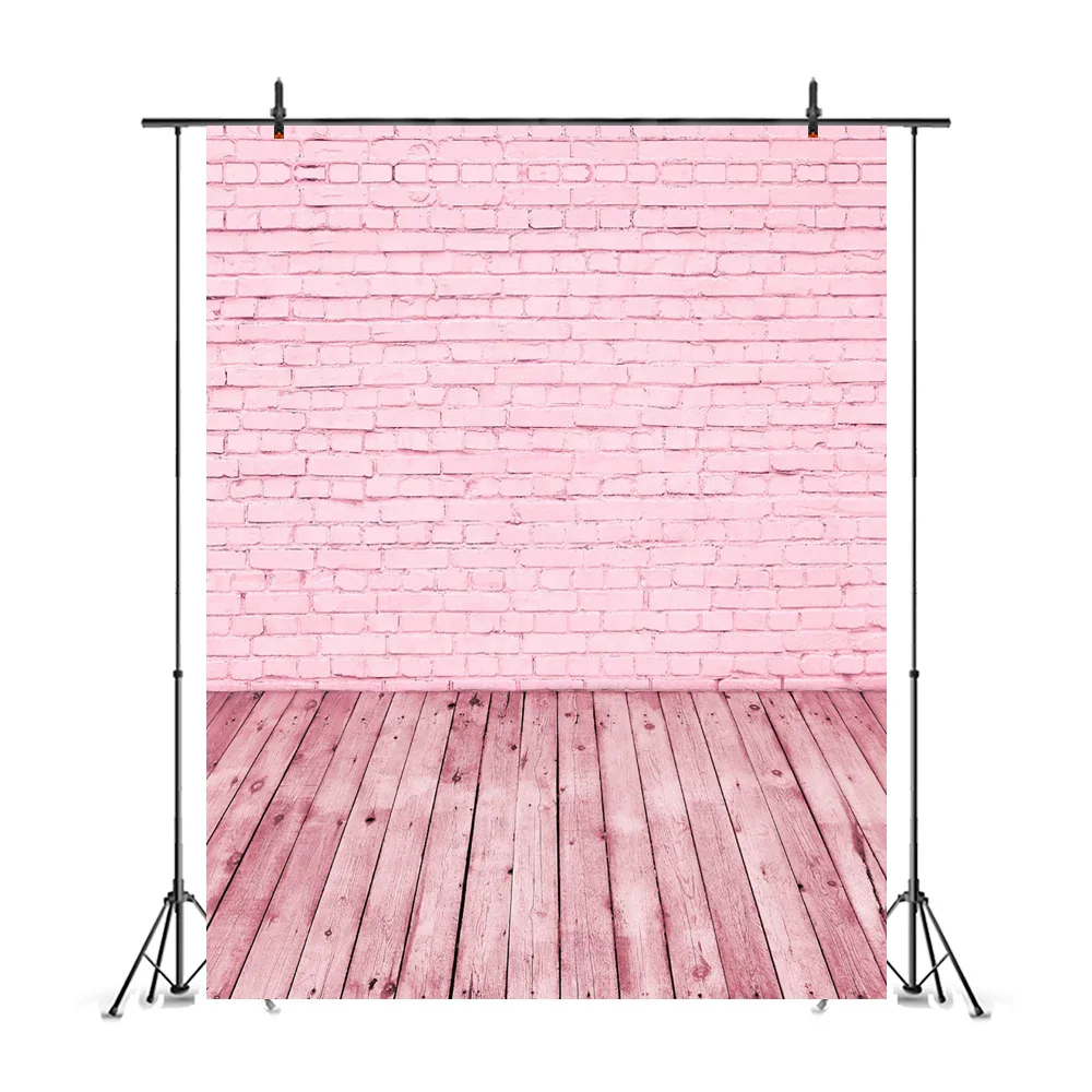 Фон для фотосъемки новорожденных с розовой кирпичной стеной и серым деревянным полом