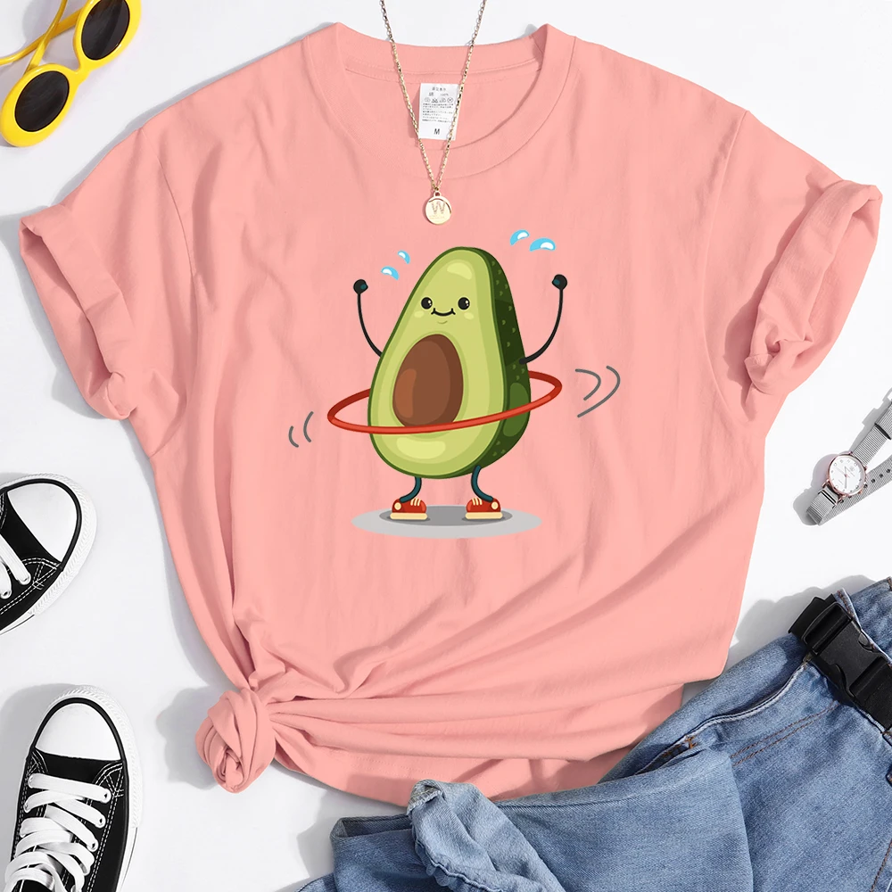 Женская футболка с авокадо и мультяшным принтом, футболка для тяжелой атлетики для женщин, повседневная женская футболка в стиле Харадзюку, одежда в Корейском стиле хип-хоп