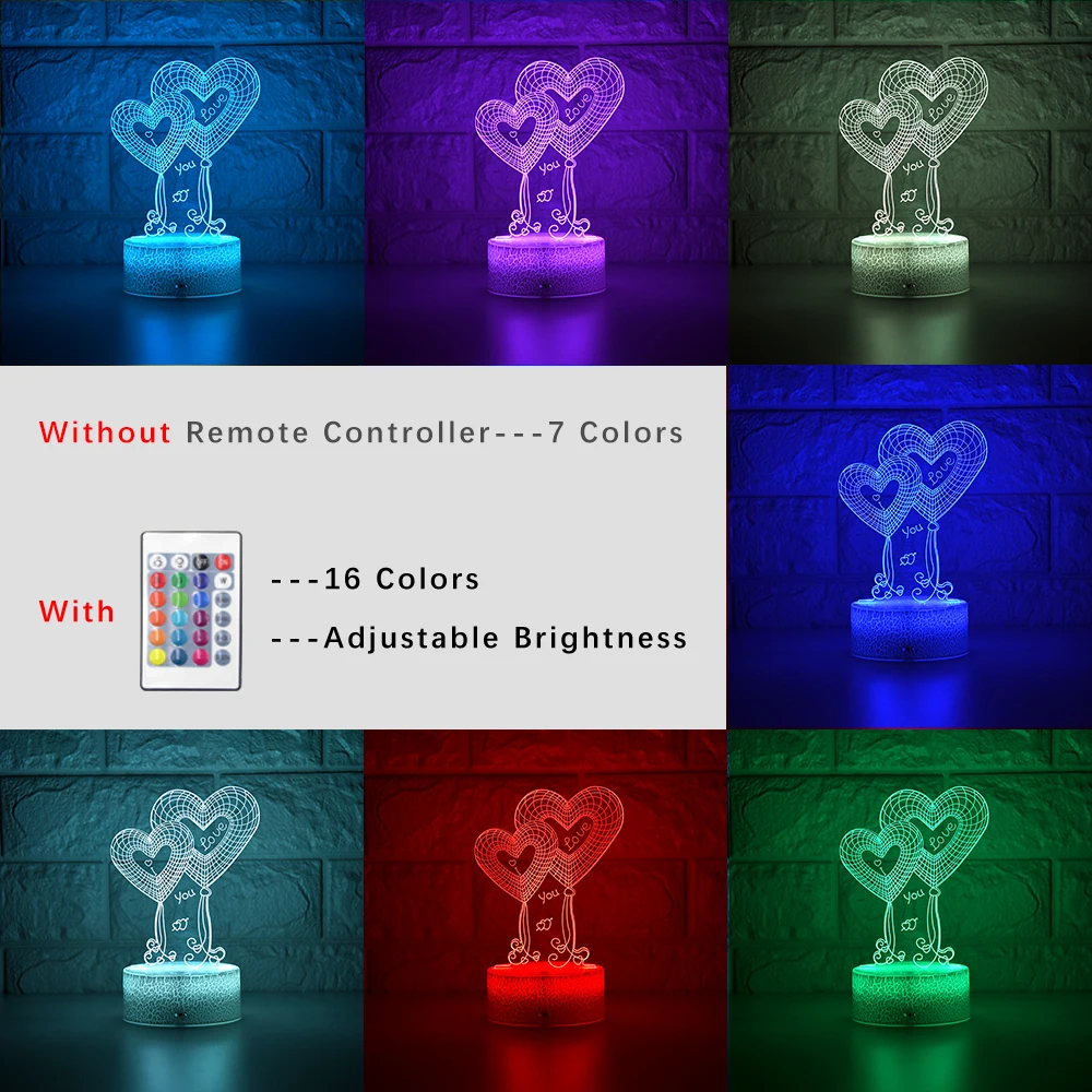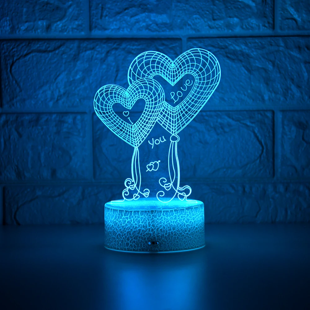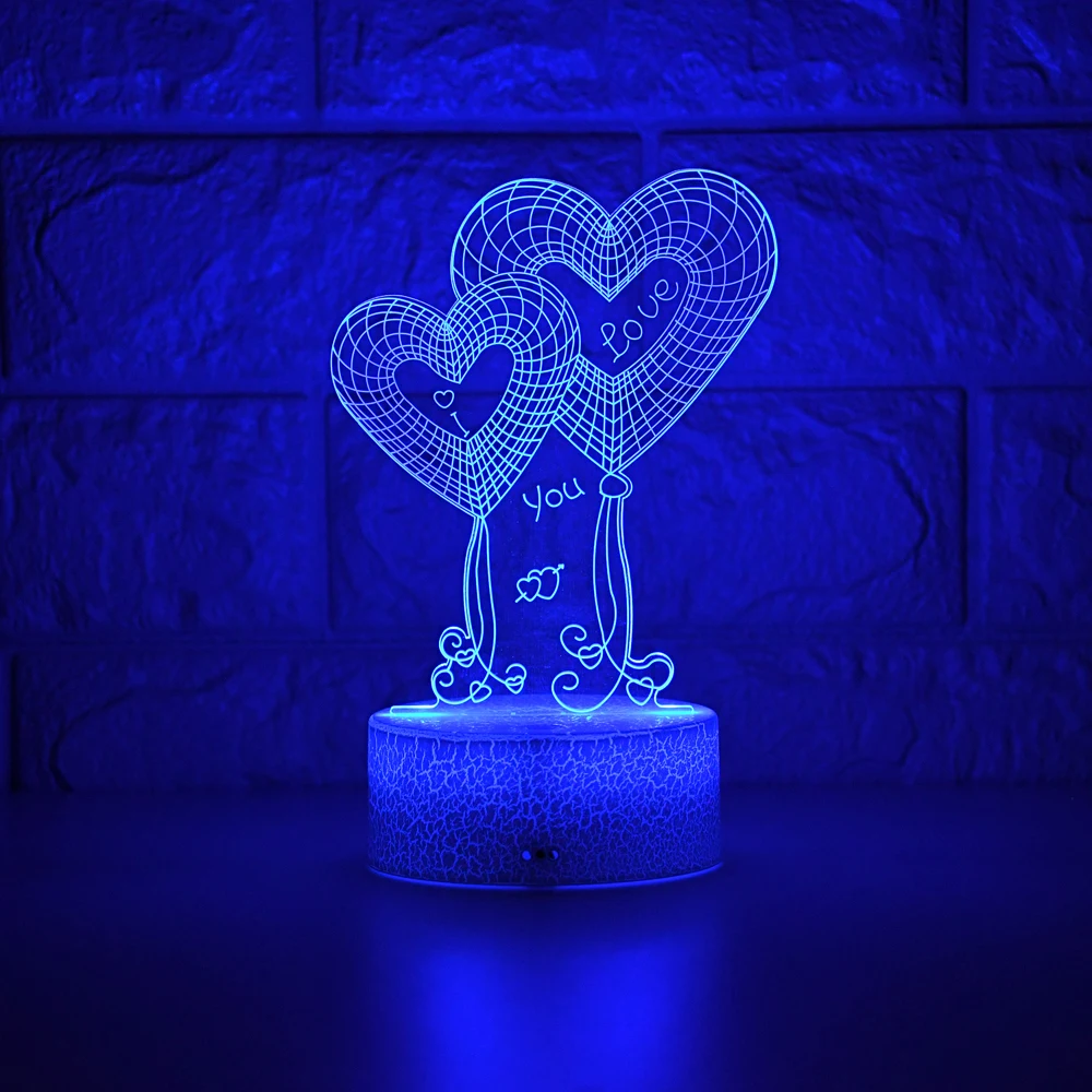 Романтическая 3D лампа в форме сердца, воздушный шар, акриловый све...