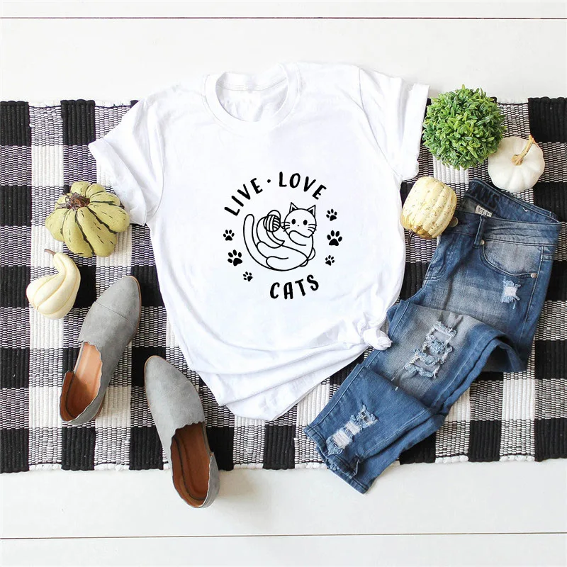 Футболка женская, с круглым вырезом и коротким рукавом, с принтом кошек