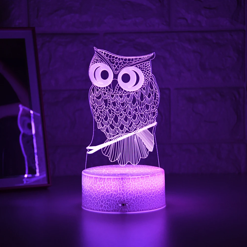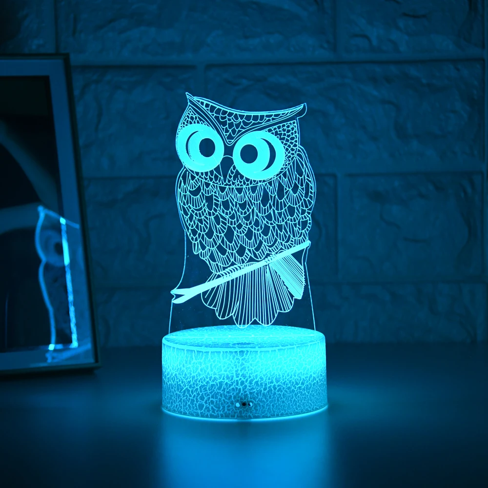 Новинка 2020, детский ночник, 3D светодиодный Ночной светильник, креативный Настольный прикроватный светильник, романтический светильник в виде совы для детей и девочек, украшение для дома, подарки