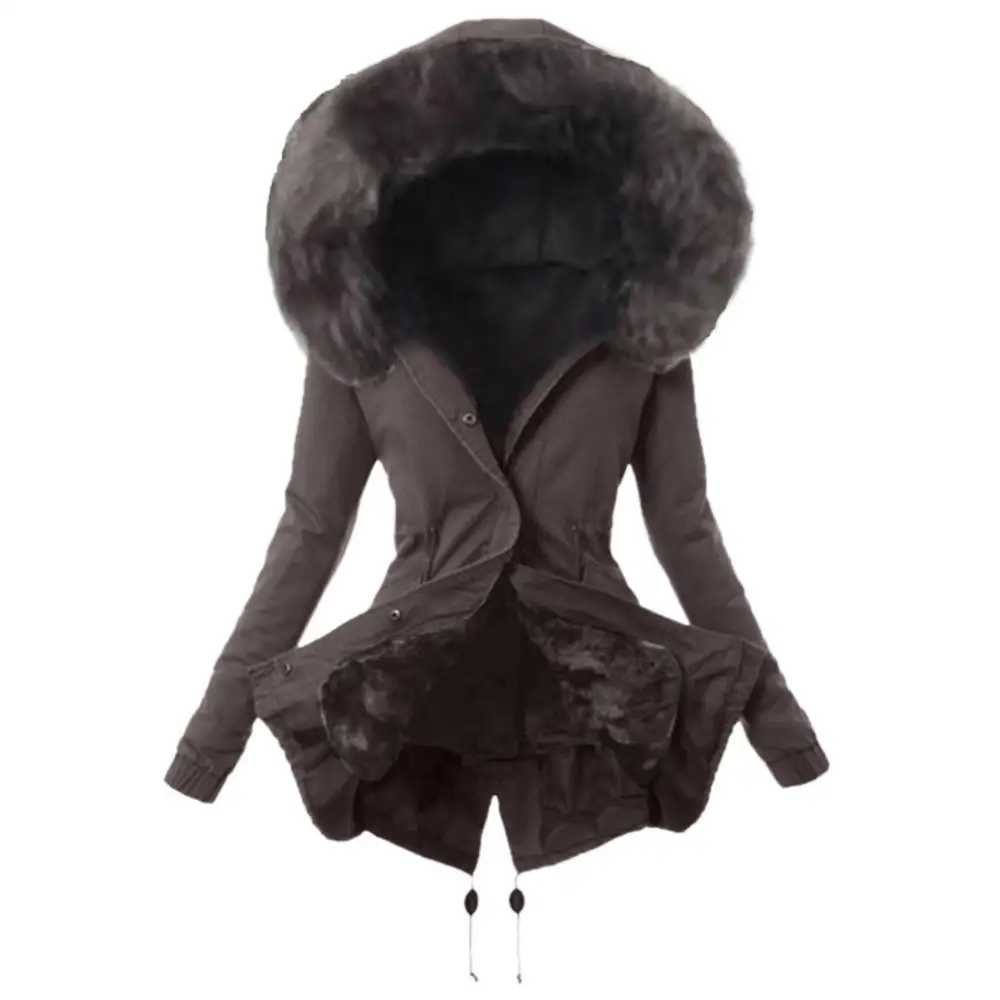 Женское пальто с капюшоном из искусственного меха ZITY, Женское пальто с подкладкой из искусственного меха, женская зимняя теплая Толстая длинная куртка с капюшоном, Женское пальто