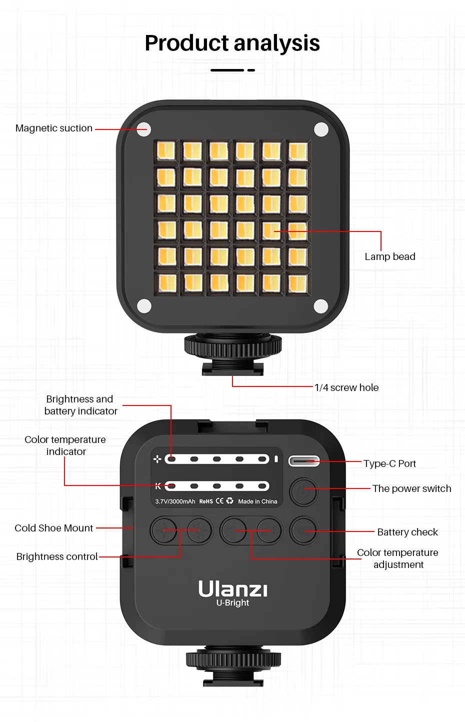 Светодиодсветильник лампа VIJIM VL81 для видеосъемки светильник-3200 K, 5600 лм 6.5 Вт с холодным башмаком