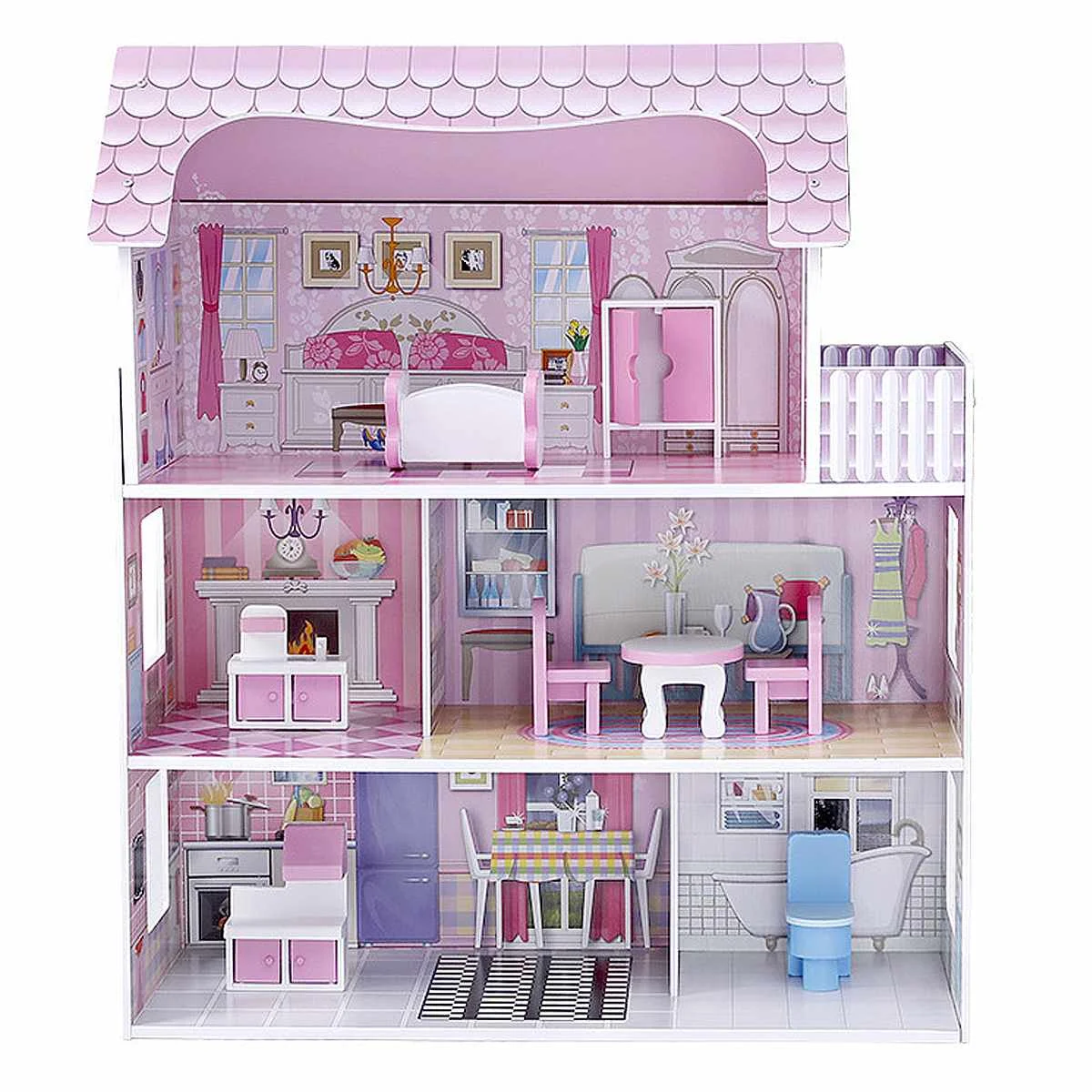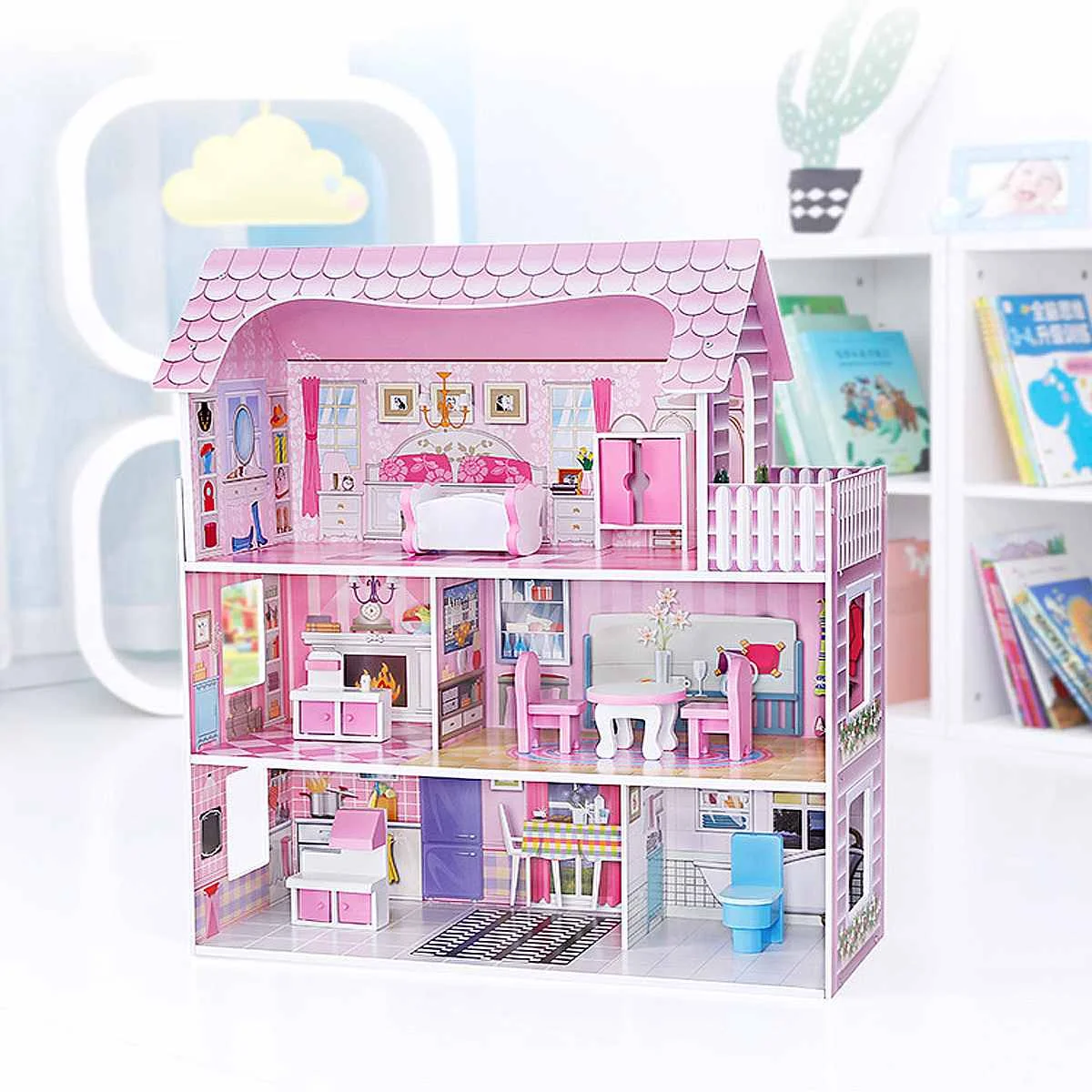 Кукольные домики деревянные Большие кукольные домики игрушки 3 слоя Дети ролевые игры игрушки полная мебель для детей Домашняя игрушка для дома