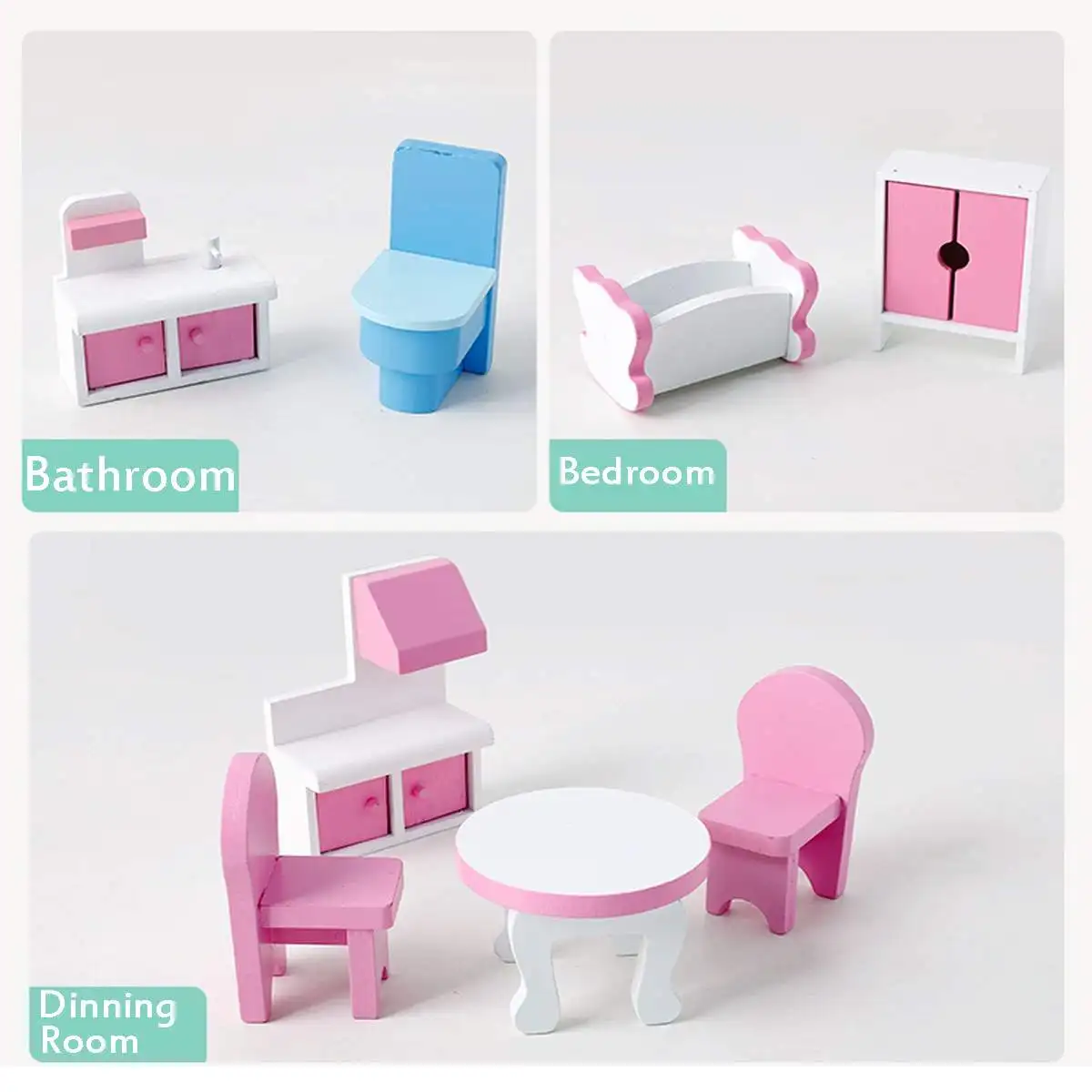 3 Слои Деревянный DIY Кукольный дом доя больших полных мебель для к...