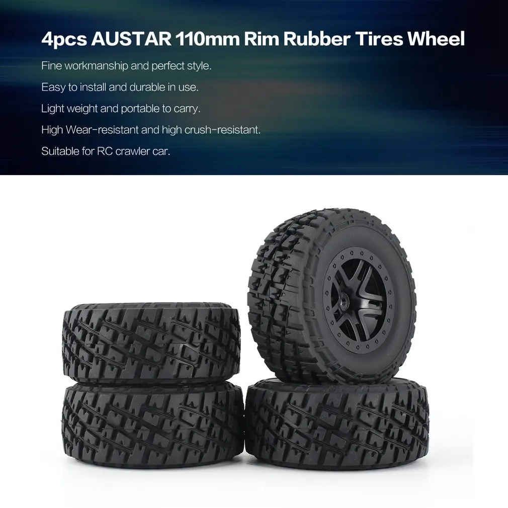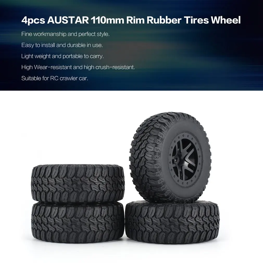 4 шт. AUSTAR 110 мм обода резиновые шины колеса комплект запасных частей Аксессуары для Traxxas Slash 4X4 RC4WD HPI HSP гусеничный автомобиль