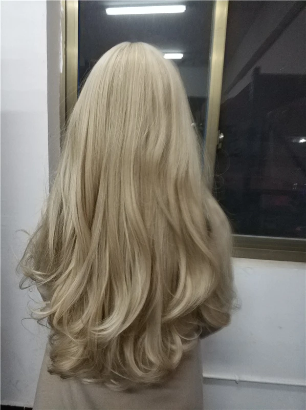 Женские Длинные Платиновые парики для косплевечерние, светлые волнистые синтетические парики с челкой