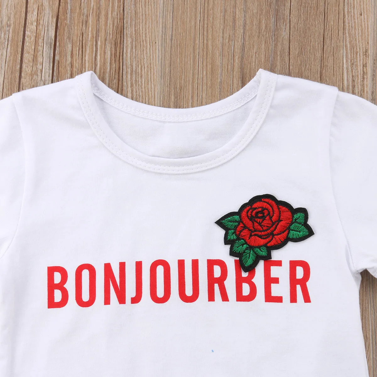 Комплект одежды Emmababy для маленьких девочек, футболка с коротким рукавом и принтом в виде цветов, юбка с разрезами, 2 шт. вечерние чная одежда для маленьких девочек