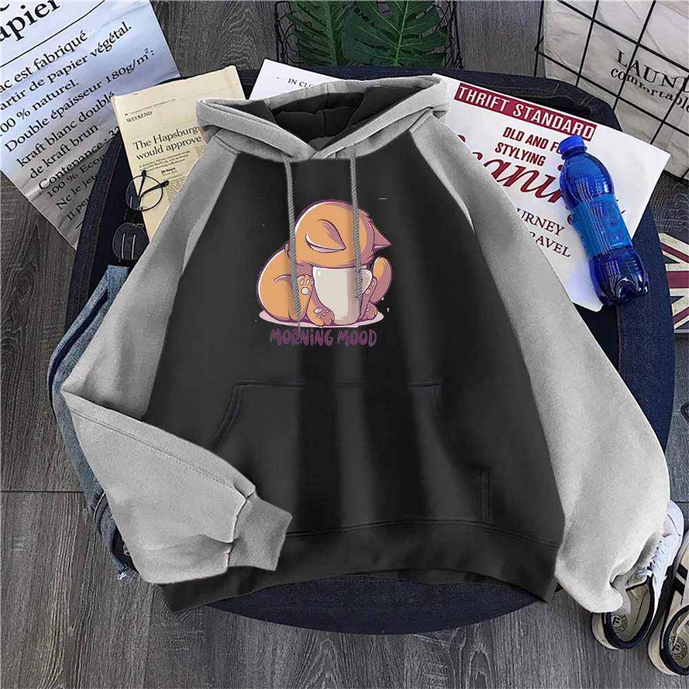 Женская толстовка с капюшоном Cat Is Looking At The Cup, свободная флисовая толстовка с капюшоном, винтажная модная Женская толстовка с рукавом реглан