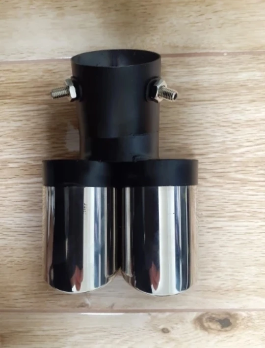 Двойной выходной наконечник выхлопной трубы автомобиля из нержавеющей стали, с наклонным краем, универсальный глушитель, черный + серебристый, внешние принадлежности автомобиля