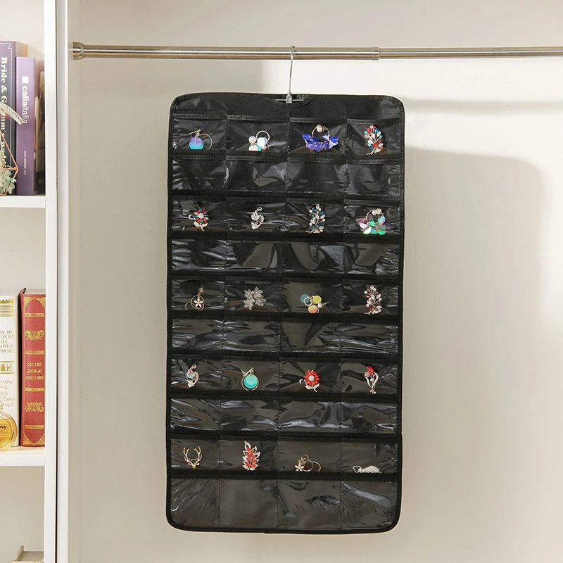 Двухсторонний держатель для сережек, сумка для хранения 40 карманных сережек имеет достаточно места для хранения ожерелья, колец, серег, браслетов, аксессуаров для волос, лака для ногтей, помады и т. д. Прозрачная витрина для ювелирных изделий из ПВХ очень подходит для демонстрации ювелирных изделий, позволяя вам видеть и выбирать подходящие ювелирные изделия с первого взгляда