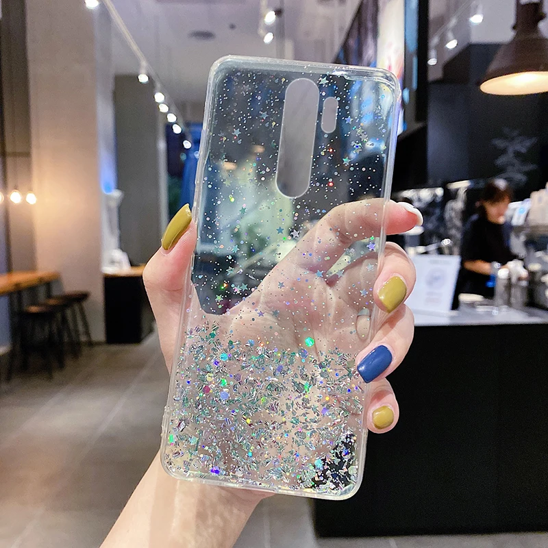 Ультратонкий симпатичный блестящий силиконовый чехол для телефона Xiaomi Redmi Note 9 C 8 7 Mi 11 10 9 T Lite Pro, роскошный чехол со звездами и блестками