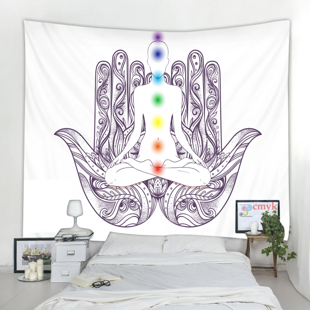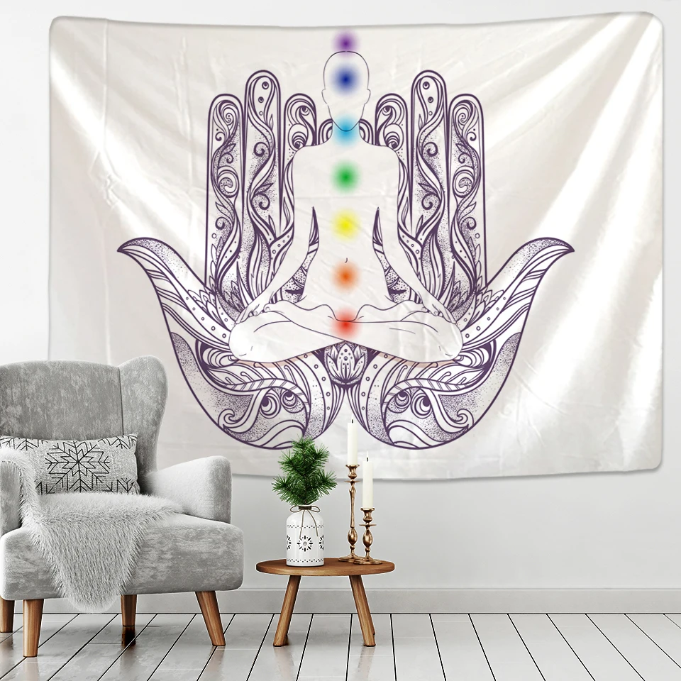 Статуя Будды, медитация, 7 чакр, гобелен, настенная мандала, гобелены, настенная ткань, Psychedelic Коврик для йоги, декор в стиле бохо, индийский