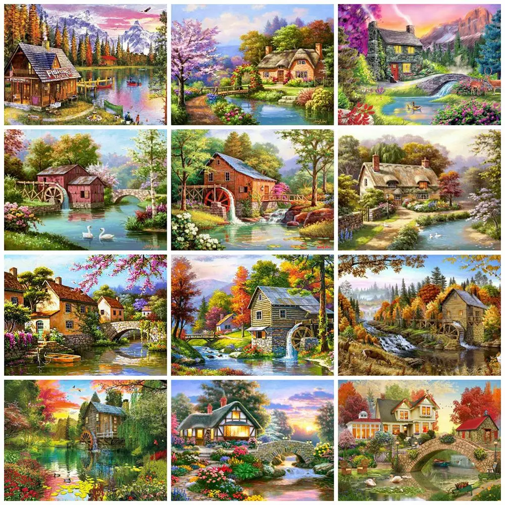 Алмазная живопись квадратныекруглые наборы дом Бриллиантовая вышивка озеро вышивка крестиком пейзаж Стразы искусство хобби подарок домашний декор