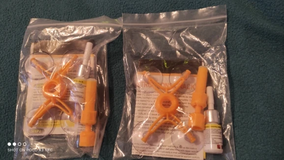 Фотки и в ютубе посмотрите, в общем суть да дело! Делал все по инструкции как в ютубе, как итог толку 0, от слова совсем, то ли стекло такое, то ли руки такие. Трещина ни на миллиметр не заполнилась, в месте скола, да чуть заполнилась. При движении поршня, субстанция выливалась из цилиндра вверх, а не в заполняемую полость, ибо уплотнения между поршнем и цилиндром отсутствует
