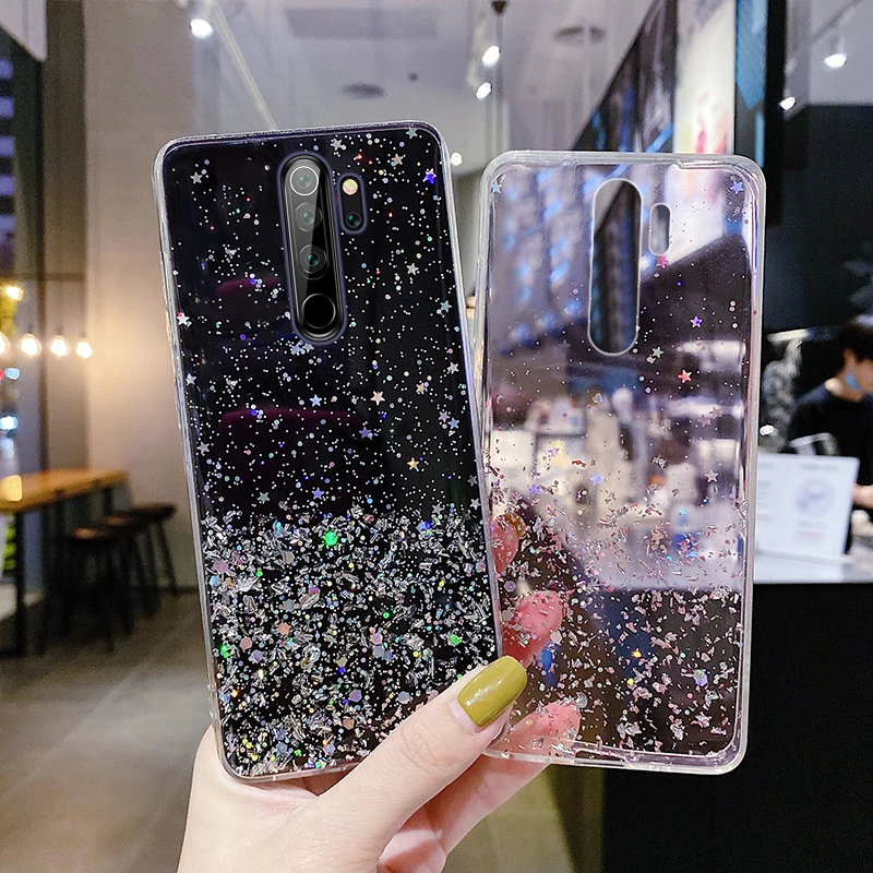 Ультратонкий Блестящий силиконовый чехол для телефона Xiaomi Redmi Note 10 9 8 Mi 12 11 T Lite Pro, Роскошный прозрачный чехол с блестками