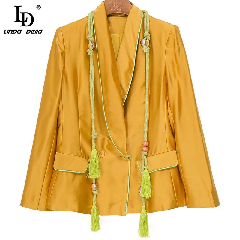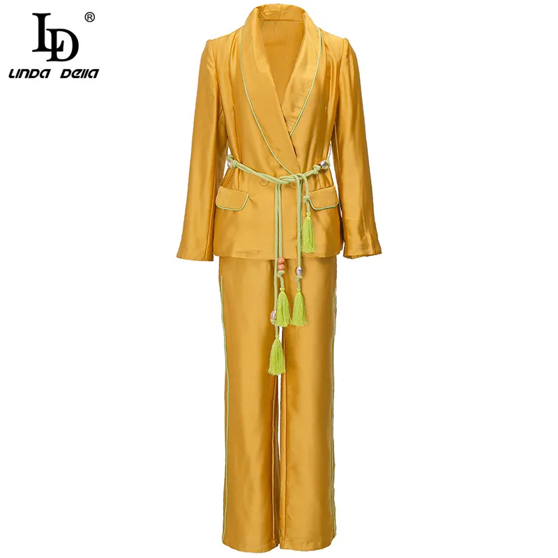 LD LINDA DELLAМодный женский осенне-зимний дизайнерский комплект из 2 предметов, блейзер с длинными рукавами и брюки, офисные женские костюмы