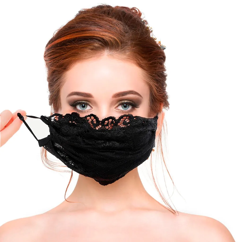 Маска женская кружевная, черная, противовирусная, дышащая, 2 шт.